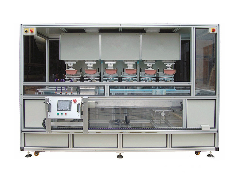 四、如果客戶需要,TM-P6S六色穿梭移印機可以改為TM-P6S六色穿梭移印機Y型移印機,即將油盆刮刀部分改為密封油盅部分。 TM-P6S六色穿梭移印機Y油盅式四色直推移印機其主要特點及性能參數如下: 1、油墨利用率高 98.5% 2、工作環境好 開油水及油墨揮發小 3、油盅大小 ф65 4、鋼板尺寸:(可以用薄片鋼板) 75mm X 200mm(3寸X 8寸) 5、印刷面積 50mm X 120mm或ф50 6、油盅行程: 125mm 五、機器操作安全性能: TM-P6S六色穿梭移印機型移印機符合最新的工程式樣,如按要求使用絕對值得信賴。 (1)、機器裝有緊急開關:當遇到緊急事情時按下緊急開關,則機器馬上斷電。回到起始位置,當事情處理好后扭出緊急開關,便可以安全啟動恢復正常。 六、注意事項: (1)、當機器需要移動或修理時,必須將電源和氣源切斷。 (2)、當調整或清洗油盅時,有被割到的危險。 (3)、增強防火意識,配備消防器材。